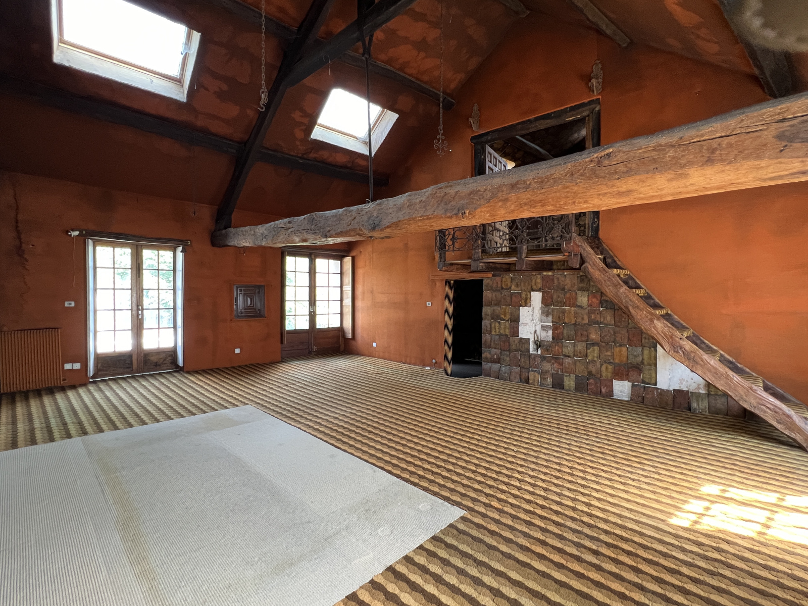 A l'étage, palier desservant salle de bains avec WC, une grande pièce donnant sur terrasse, chambre sous combles.