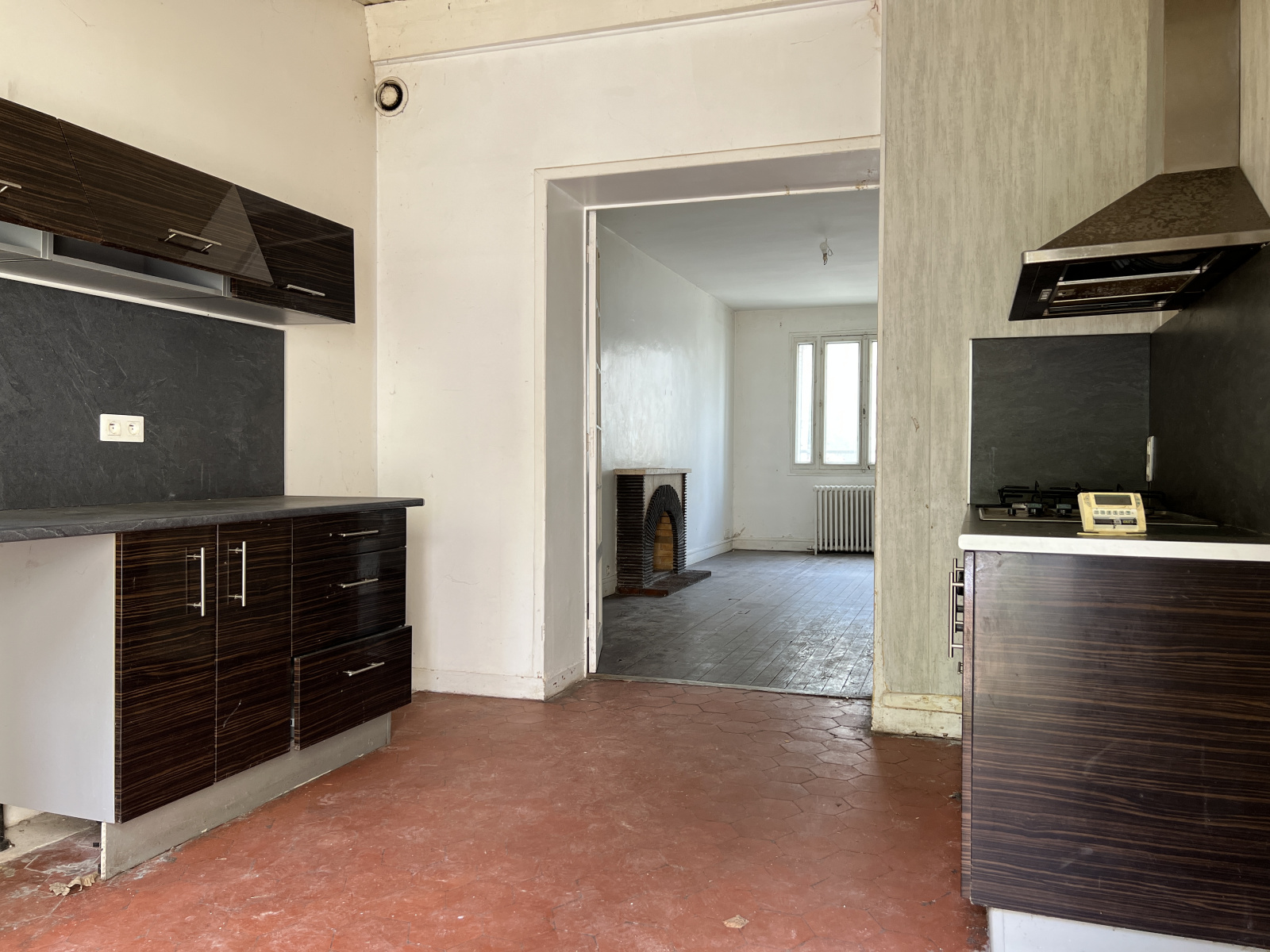 Erigée sur une parcelle de 423m² elle comprend : entrée dans une grande pièce, salon avec cheminée, cuisine donnant sur cour, salle d'eau et chaufferie. A l'étage : 3 chambres et une salle de bain avec WC.