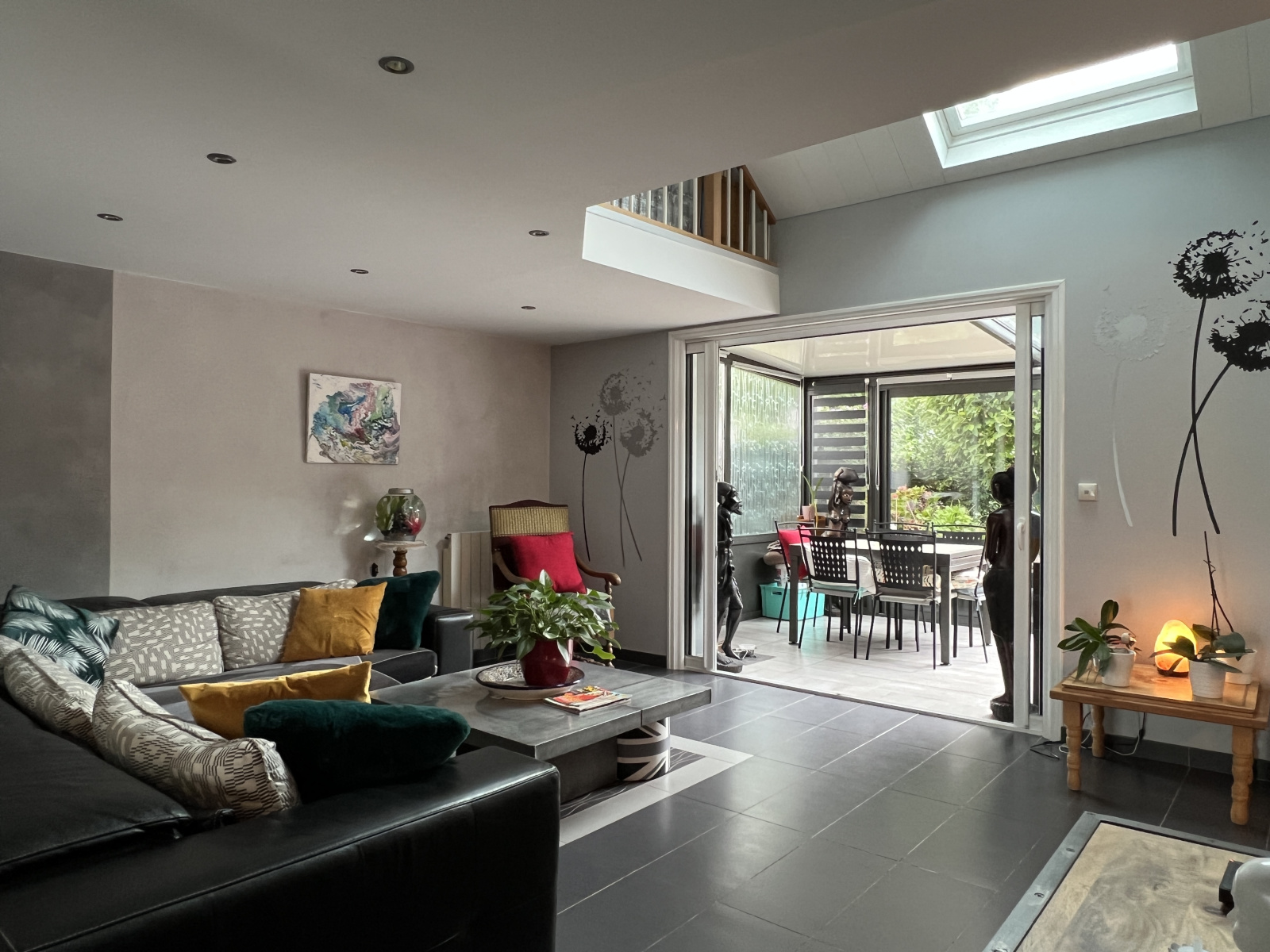 Au rez-de-chaussée, entrée, cuisine entièrement équipée ouverte sur salle à manger, vaste séjour, véranda contemporaine très bien isolée, buanderie et salle d'eau avec WC.