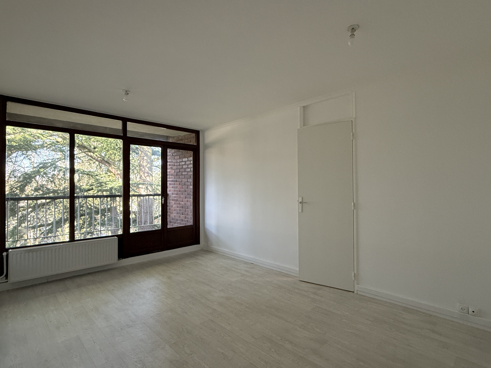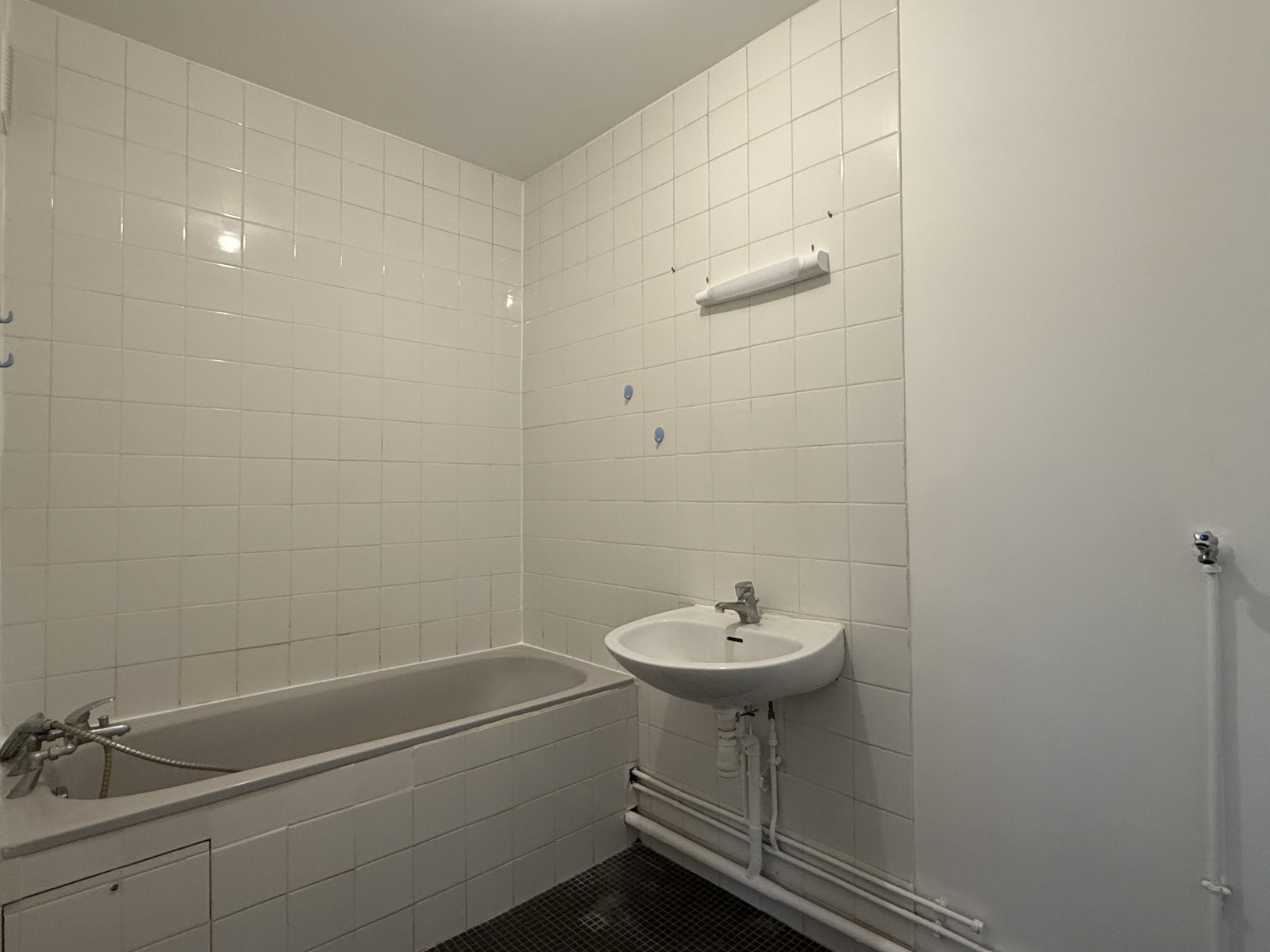 Entrée sur séjour avec balcon, cuisine indépendante pouvant être ouverte sur séjour (avec travaux pour supprimer une cloison, sans nécessité d'autorisation de la copropriété), une chambre, salle de bains et wc séparé.
